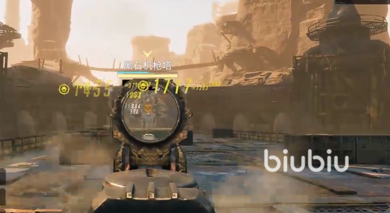 清理完4只黑戎重装战士,往高台上走切换场景就能进入第1个小boss战,对战黑石机枪塔。Boss是基地的防御设施,有无需索敌的机枪扫射,每两秒左右扫射一次,如果玩家没有蹲到掩体就会被重伤。其次当掉一半血时,黑石机枪塔会套一个高科技防护盾,并且召唤两名黑戎火焰战士。黑戎火焰战士是手持喷火枪的近战战士,因此推荐玩家在刷图不要站太前,否则准备可能来不及。