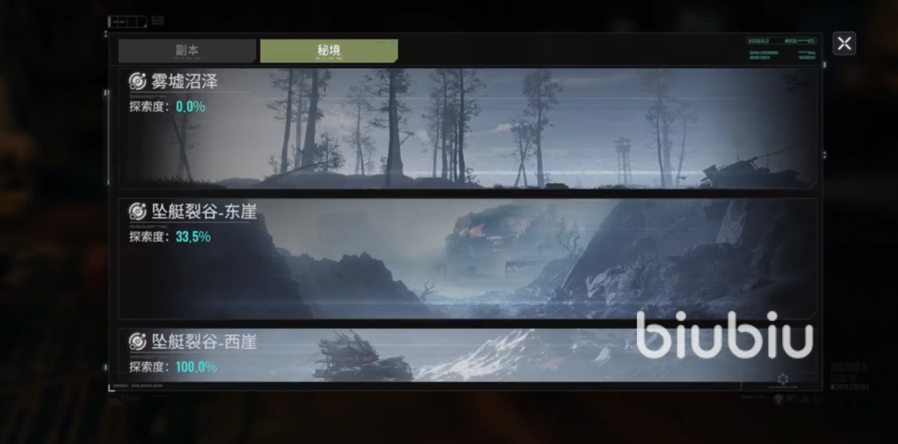 推荐大家先开启雾墟沼泽秘境的探索模式,底下会有一个百分比的探索度,满100%会有奖励。探索推荐的火力为362,一般玩家上20级都能打。