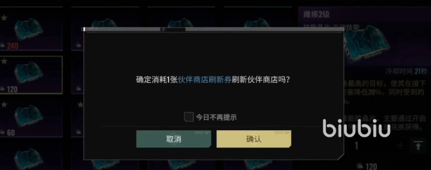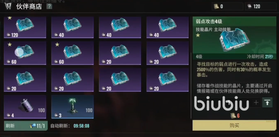 不过带不带英勇还要看完得什么武器,如果是玩步枪的话,英勇可以换成灵巧。 这些技能大多是可以在伙伴商人这里直接购买的,兑换伙伴道具,每天都会刷新一些技能,运气好会刷出玩家想要的,等不及就直接用秘境兑换的刷新券直接刷新。