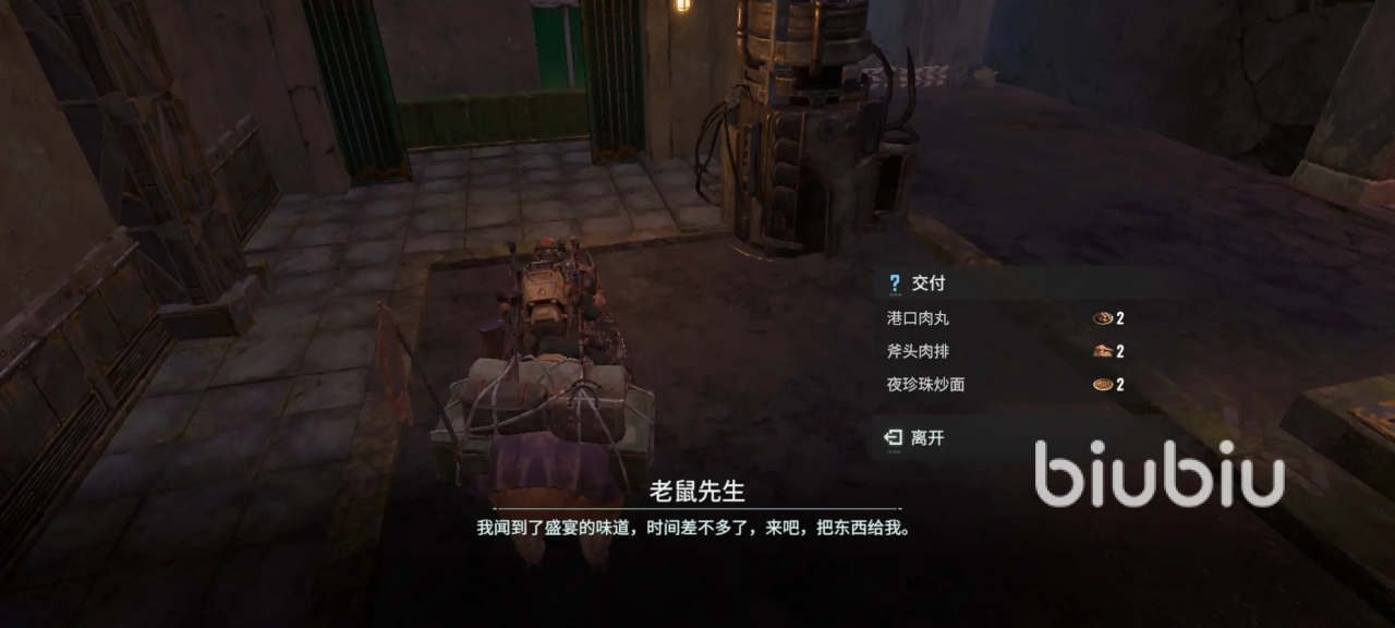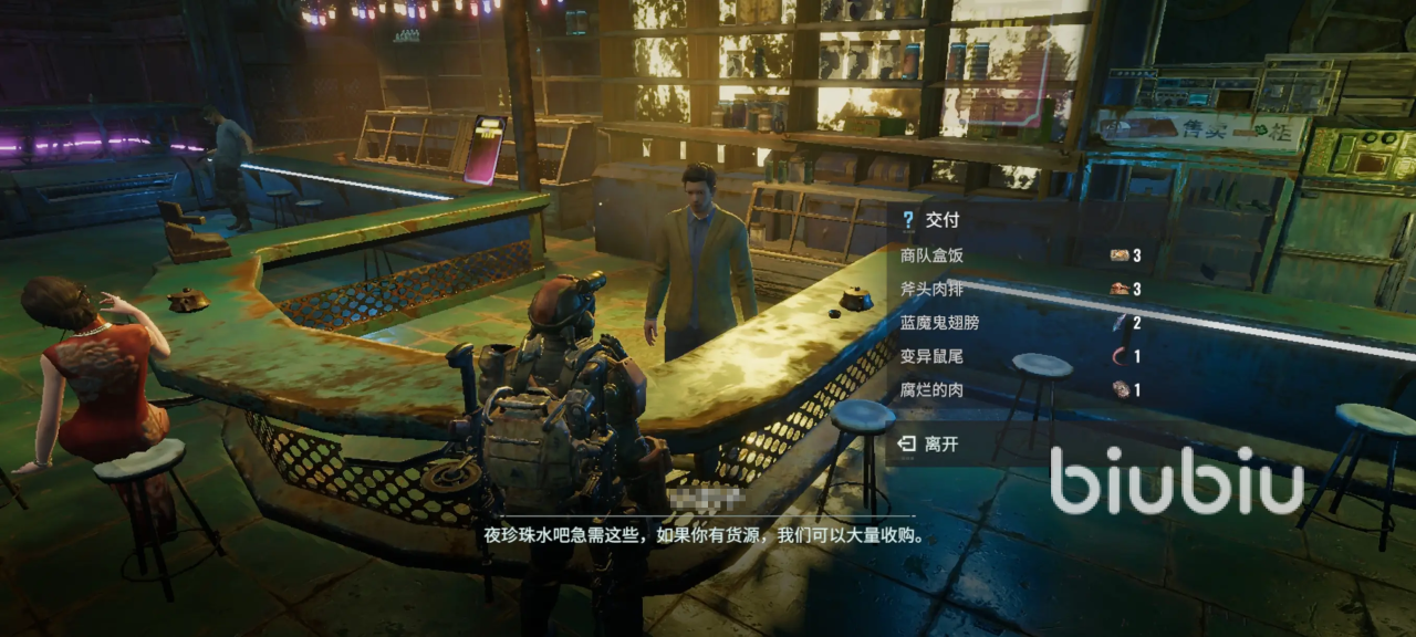而城里面有一个地方叫做“女娲”,这里其实是一个制作台,大家可以直接把这里当做一个后勤中枢,在这里和NPC沟通之后,就可以将一系列的制作选项解锁了,比如说医疗方面的,食物制作,弹药,器械等方面的制作,将生肉的原材料拿到之后就可以在这里加工。