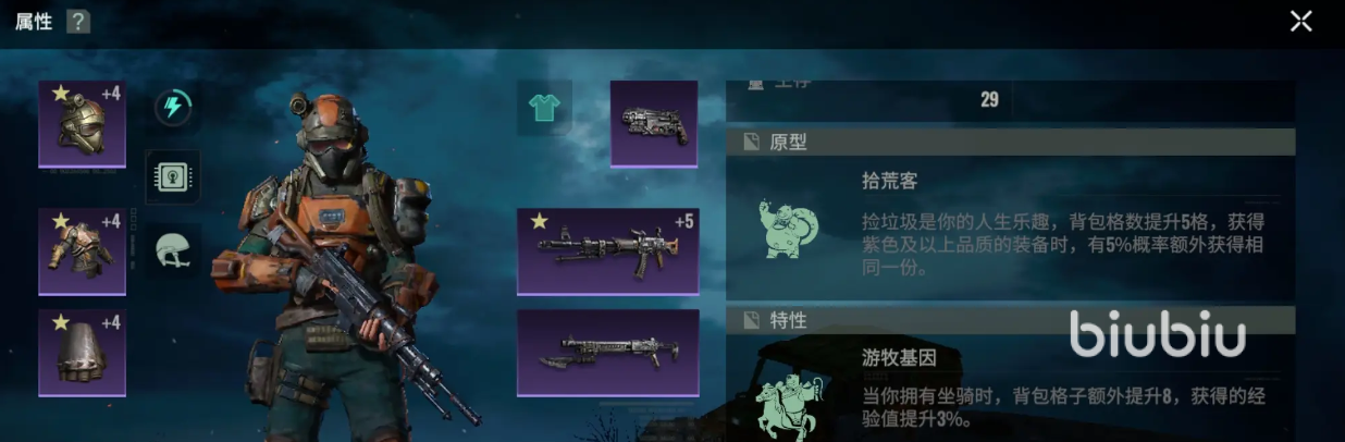如果大家平常更加喜欢当一个坦克的话,那么就可以选择成为保安。至于原型上则可选择变化体质,不仅可以提升生命值,当你血量低时就能更快地恢复生命值。然后还可选择宅男,如此便可扩充你的背包容量,让你可以提升获取紫色装备的概率,进一步增强防御能力!