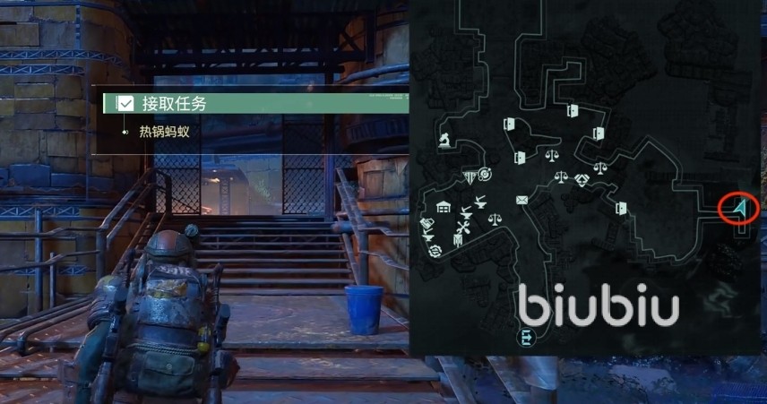 在这个位置上找到npc芯片商人领取任务。任务要求是寻找两个多晶硅,一个在杂货商人处一个在枪匠商人处。拿到后交给芯片商人就算是完成任务了。