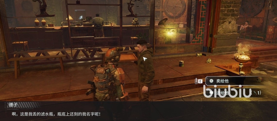 在塘湾饭店找到得子领取任务,根据任务提示找到滤水瓶,将滤水瓶交给得子完成任务。