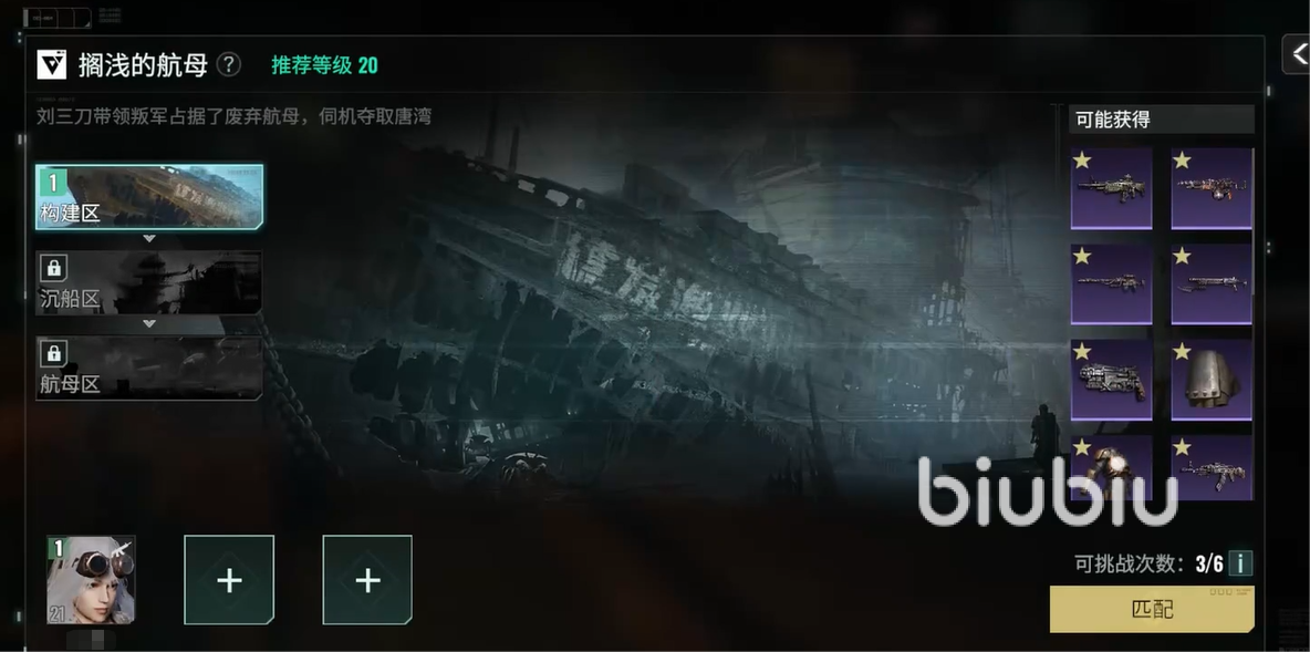 当大家拥有制作武器的功能之后,那么还要获取相应的武器图纸之后才可以将其制作出来。想要获取武器图纸的话,那么就可以去攻打不同类型的副本。比如搁浅的航母,除了武器图纸之外还可以掉落其他装备,匹配之后就可以攻打,然后结束了就能获得图纸。