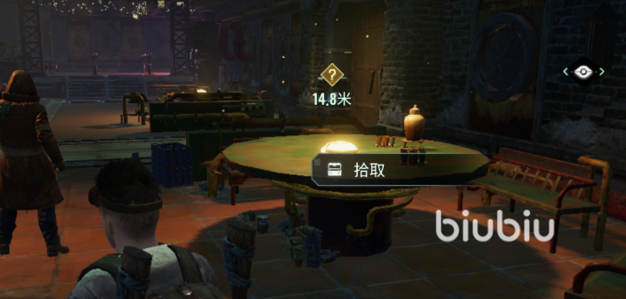 而在距离吧台较远处的桌子上也是一个类似的宝箱;离开唐湾饭店来到城外在工匠那里也有宝箱;面对工匠正门右边的杂物堆里有几个破旧的铁柜子,从柜子里也能找到1个宝箱。