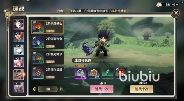 等到衍灵准备的差不多之后,就可以去“启程”系统了,这里面可以去参加关卡挑战,如果挑战获得胜利的话,就能够得到经验奖励,另外还可以获得其他奖励,比如灵玉,通宝之类的;游戏当中还有一个“速战”的系统,这里也是需要消耗体力的,如果小伙伴们体力充足的情况下,可以直接选择“速战十次”,十次的进行比单次进行更加的快速高效,能够更快的得到大量的经验。