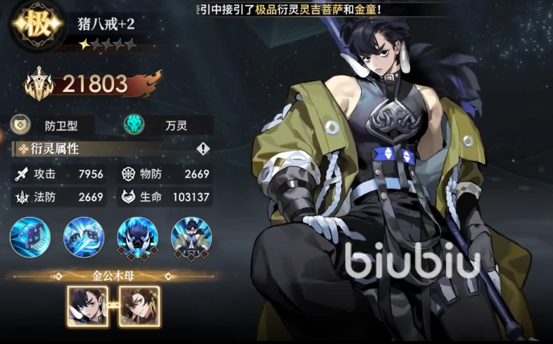 最后还有两位角色,这两位角色就是猪八戒和沙悟净,前者是一位坦克定位的五星角色,该角色的防御属性很高,技能上,该角色的技能也都有增加防御的效果;后者沙悟净则是一位高爆发的刺客定位的五星角色,该角色属性上攻击尤为的突出,技能上也是以爆发伤害为主,可以打出高额的输出。