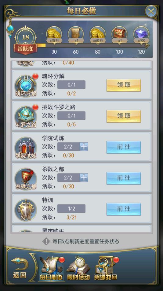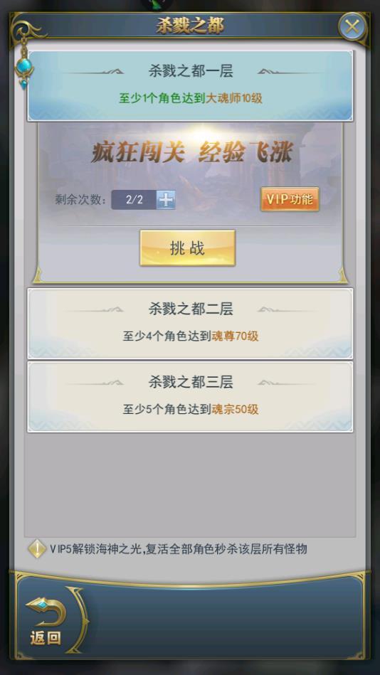 杀戮之都:这是一个每日玩法,进入需要使用杀戮令牌,每天可以参与两次,获得大量的经验值。如果玩家将活动的通关评分保证在3S,那么就可以触发隐藏副本的奖励。这里面的宝藏是很多的,当然也包括了重生石。