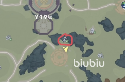 来到标记地点就可以了,在这里就能找到第二个篇章了,找到后来到星斗祭坛下方的传送点,来到这里后可以看到一个峡谷,通过后往右手边看来到山体上就能找到第三个篇章了,找到后前往龙墓火山传送点。