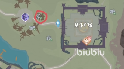 来到这里后打开小地图往左边看,在左上方的宝箱位置上面就能找到第四个角色篇章,找到后传送到星斗广场位置,然后从传送点沿着路往boss方向走,在快到boss的位置就能找到最后一个篇章,找全后可以获得5抽。