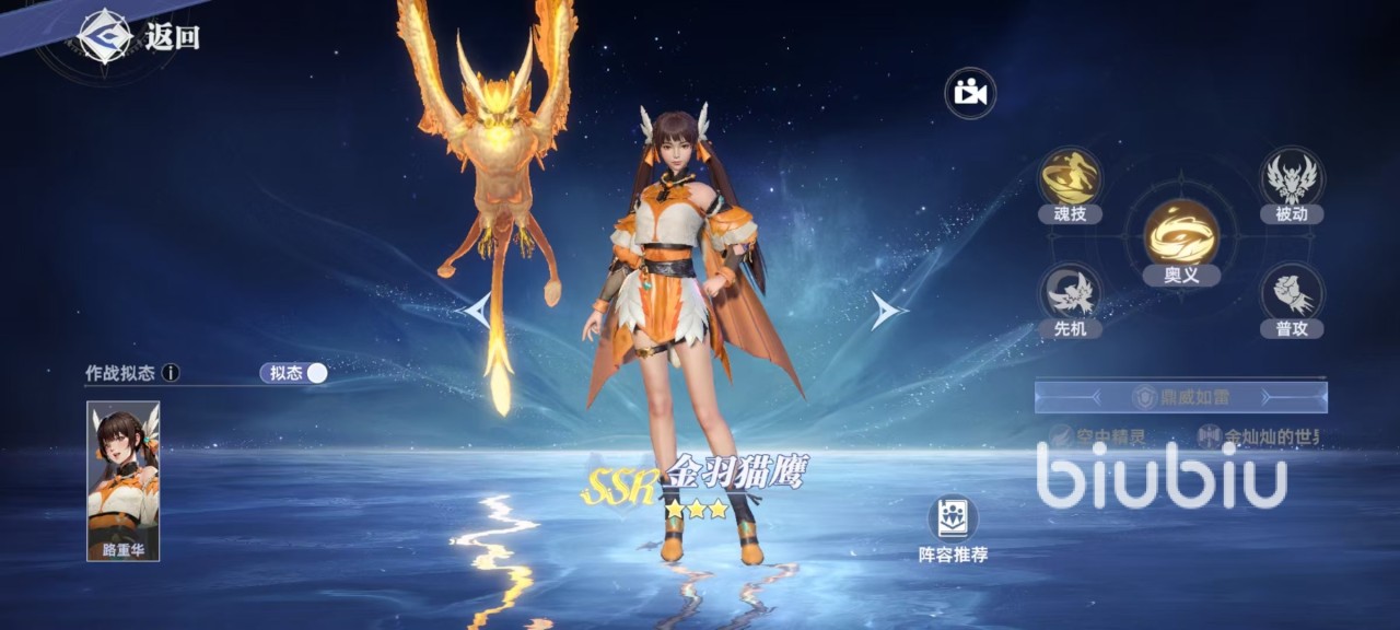 蓝电霸王龙的奥义技能,在命中目标时可添加感电效果,释放之后后提升该武魂在御雷形态下的普攻和魂技伤害。只需要在战斗中充满风雷之力,就可以激活强化魂技雷鸣动天,释放魂技进入到御雷形态,在此形态下蓝电霸王龙可以打出狂暴的输出。金羽猫鹰的第二魂环技能,可以用雷电之力控制羽毛漂浮在自身周围,对周围造成持续伤害并附加感电。金羽猫鹰擅长的是持续输出,这一点正好和蓝电霸王龙互补起来。