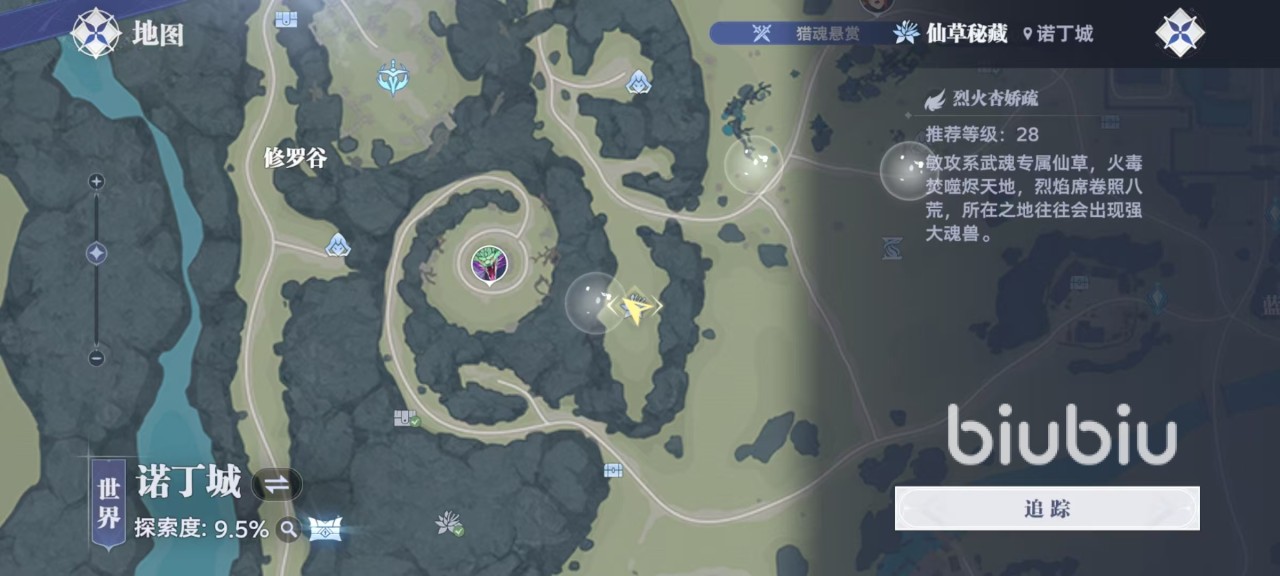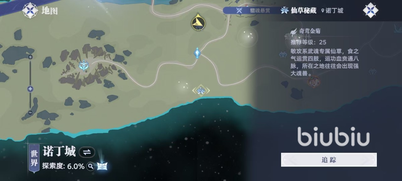敏攻系武魂专属的奇茸金菊藏身于猎魂密林附近。推荐直接传送到密林西部的传送点,随后往下走一段距离,就能发现这株珍贵的仙草。