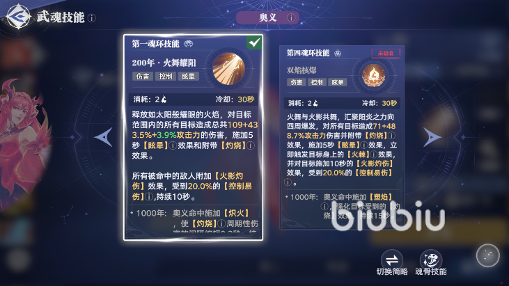 武魂的被动,属于是常驻的被动触发的效果,比如说火影的被动是魂技能和奥义可以叠加一层火棘,拥有该buff效果的敌人在受到灼烧伤害的时候,会有额外的伤害和控制易伤。武魂奥义则是能彰显武魂特性的主要技能了,通常是需要消耗魂力的,多为一次高倍率伤害技能,也可以在解锁额外的魂环后切换成其他奥义。