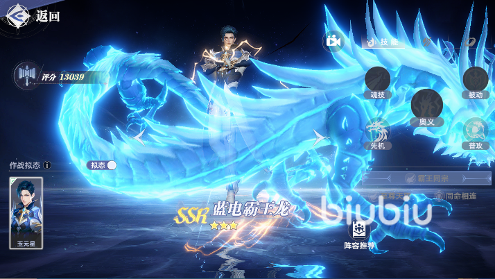 蓝电霸王龙可以给到攻击、防御、生命力、精神力方面的加成,精神力可以理解为法攻。然后是看技能,普攻5段,倍率不错,攻击距离适中。先机技,则是在目标位置召唤霸王龙,攻击并牵引范围内的目标然后降下落雷。