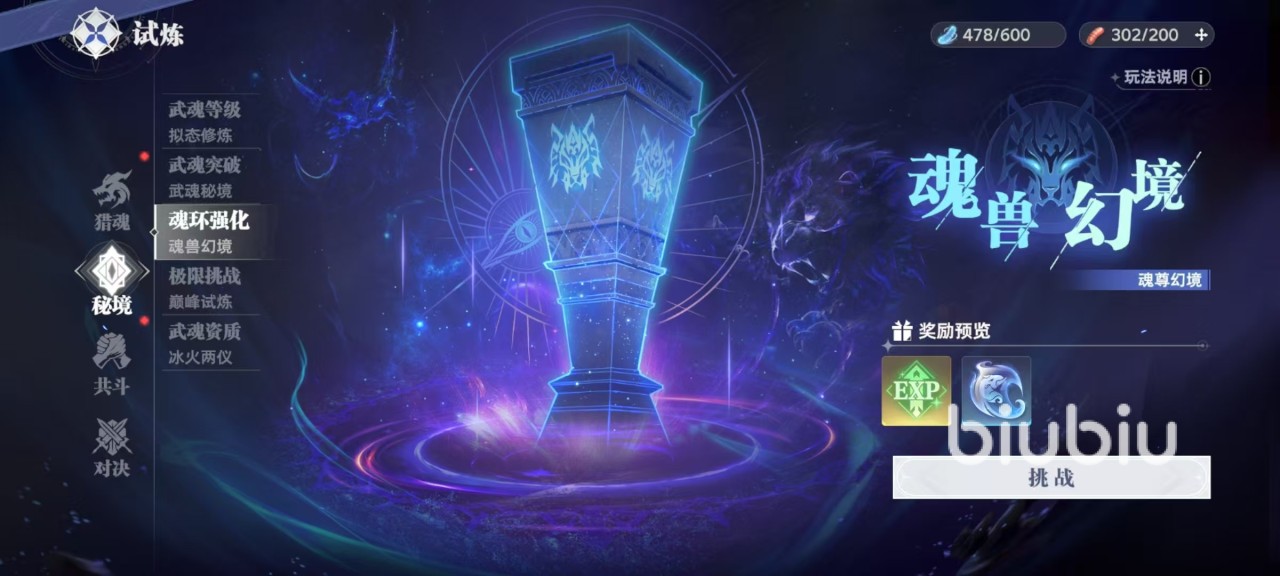 接下来是武魂等级,也就是大家熟悉的拟态修炼场,消灭副本中的怪物可以获得积分,积分越高,评价也就越高,评价等级影响获取到的奖励。只要评价等级达到ss级,就可以解锁扫荡,扫荡奖励按照当前最高评价来计算,这项活动所产出的武魂经验,可以提升魂环等级,也是战力的重要方面。魂环强化对应的是魂兽幻境玩法,不同的魂兽幻境,需要达到相应的称号后才可挑战。每个环境分为不同层数,通关上一层并且达到指定评价,可以去挑战下一层。达到指定评价后,可以直接扫荡获得对应奖励。在挑战中会刷新出多波怪物,在规定时间内守护圣柱血量,剩余血量越高,评价也就越高。