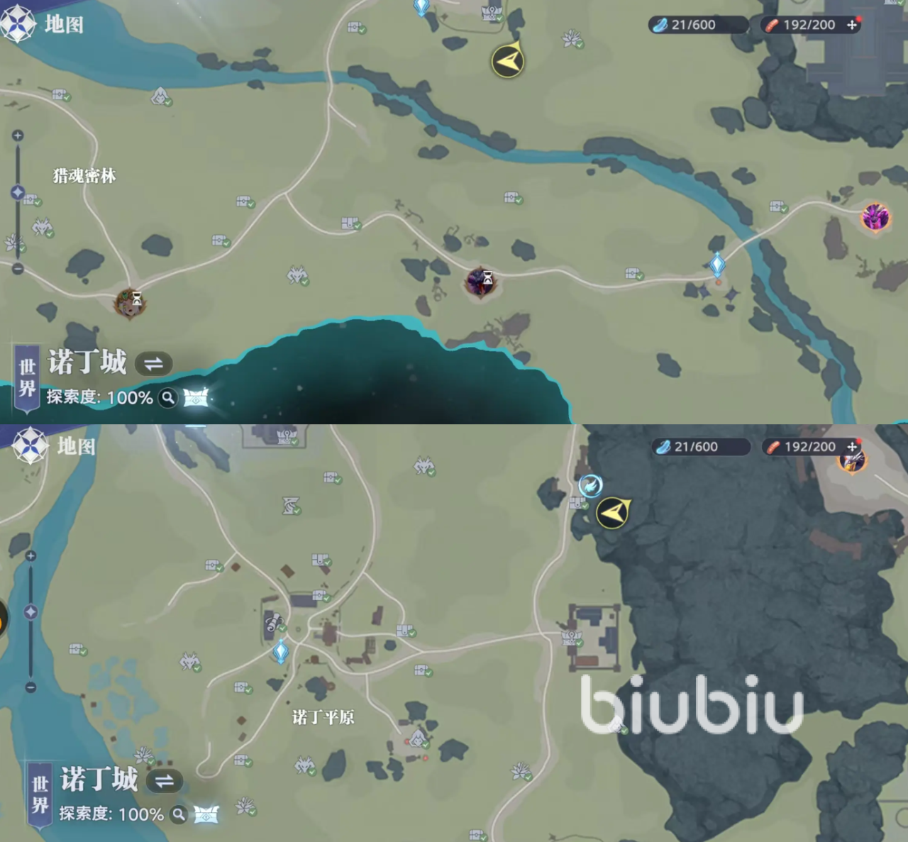目前游戏的大地图有三个区域,分别是诺丁城、星斗大森林以及天斗城,诺丁城是玩家初始游戏接触较多的地图,是一张非常方正的地图,上下左右分布较为均匀。其中,诺丁城,一共有大约155个宝箱,当然这是终测数据,公测或许会有不同。
