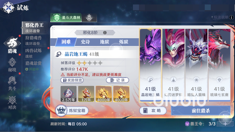 在猎魂世界中玩家可以培养自己喜欢的武魂,根据武魂技能机制与定位来搭配合适的阵容,然后再依靠着循序渐进的培养与精湛的操作技巧来狩猎魂兽,完成巅峰试炼。