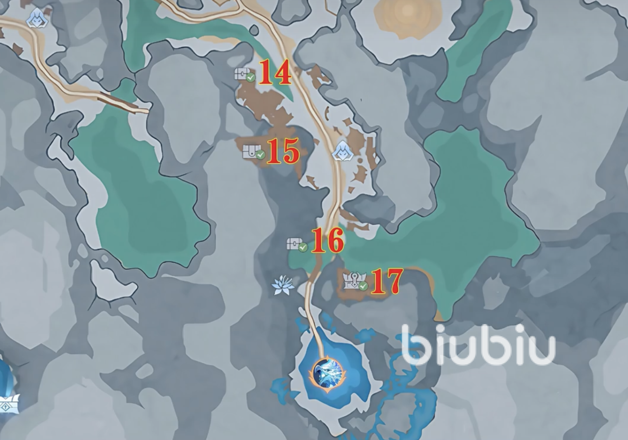 来到寒雷雪岭传送点,在通往凌寒斩霜虎的路上也有5个宝箱。