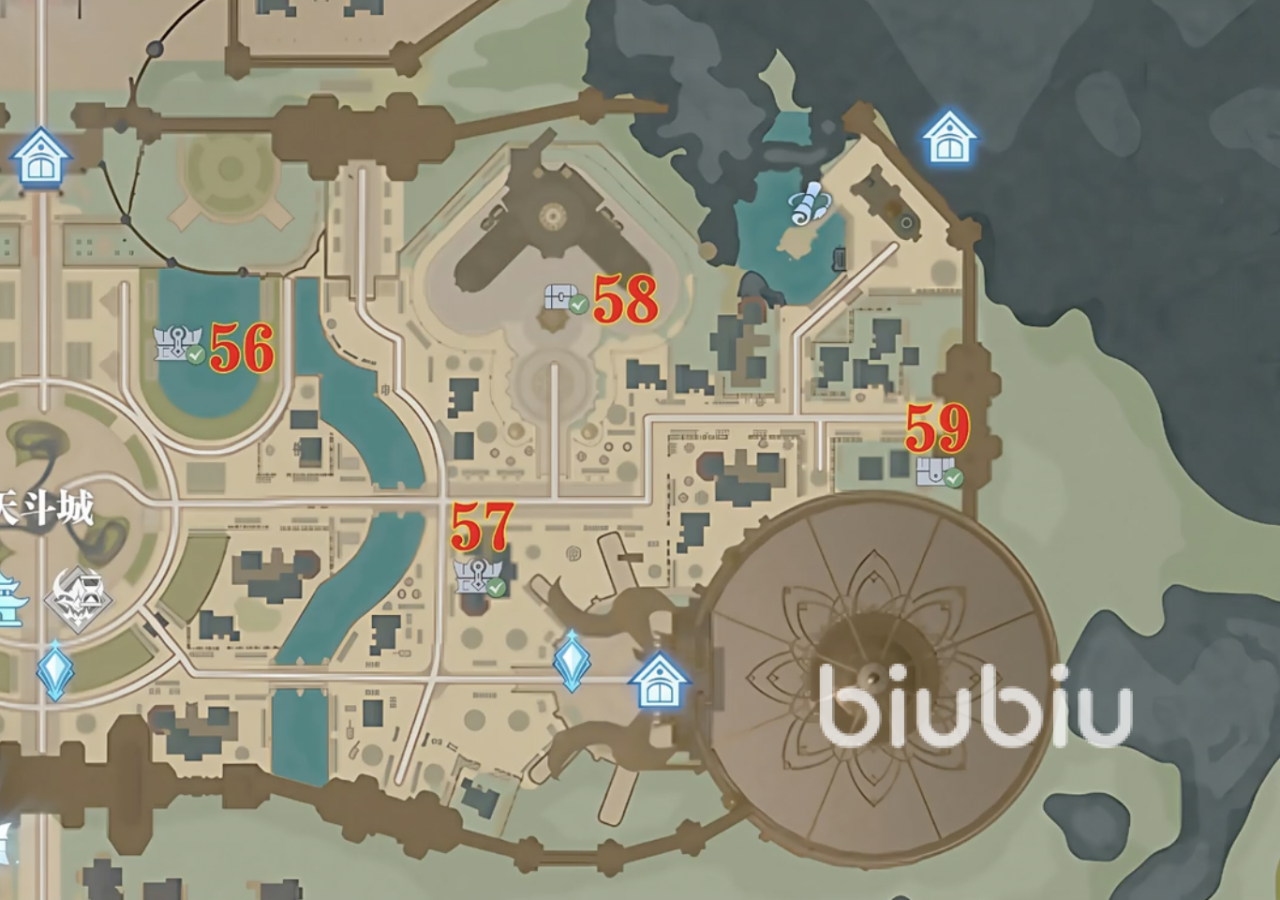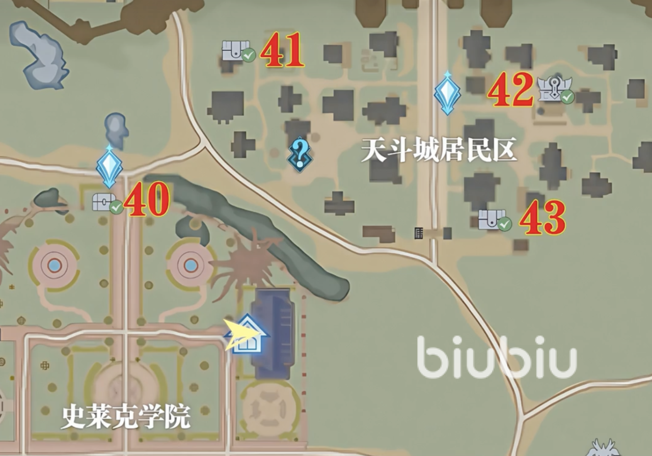 接着来到天斗城,以城中的雕像为界,在左边的天斗皇家学院,具体的宝箱如下。