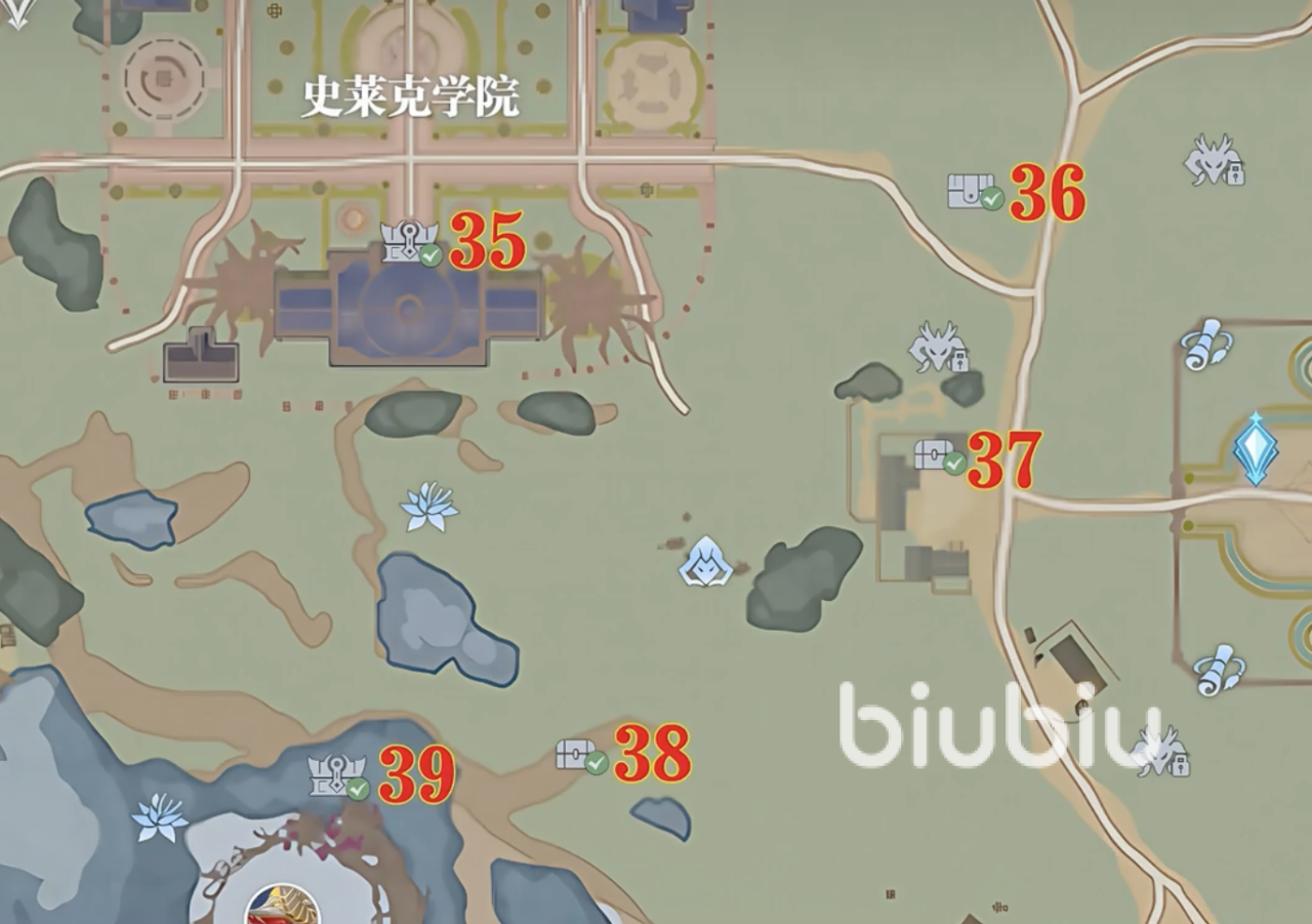 山区部分的宝箱就这么多了,接着我们到中心的平原地图,史莱克学院附近,这里宝箱比较分散,总共有5个。