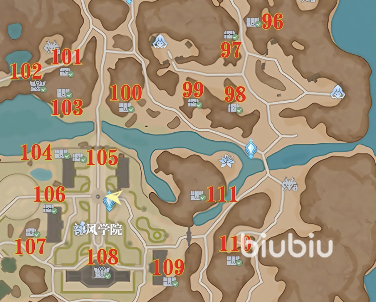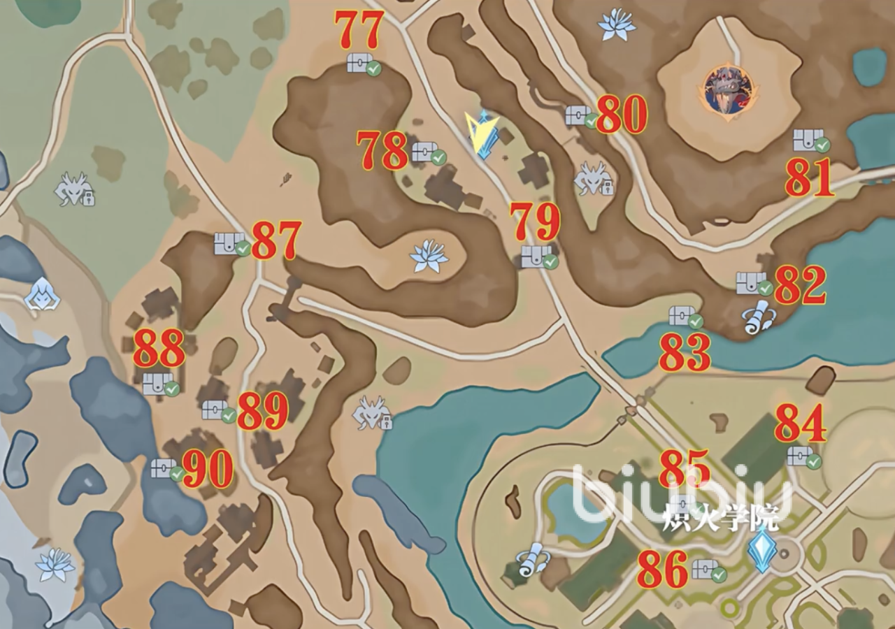 最后就是神风学院附近,基本上沿着每条路都有宝箱分布,宝箱数量比较多。