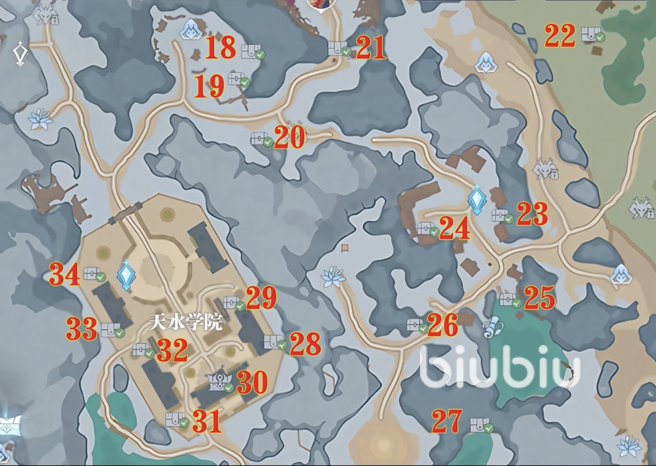 在天水学院附近的宝箱比较多,总共15个宝箱。