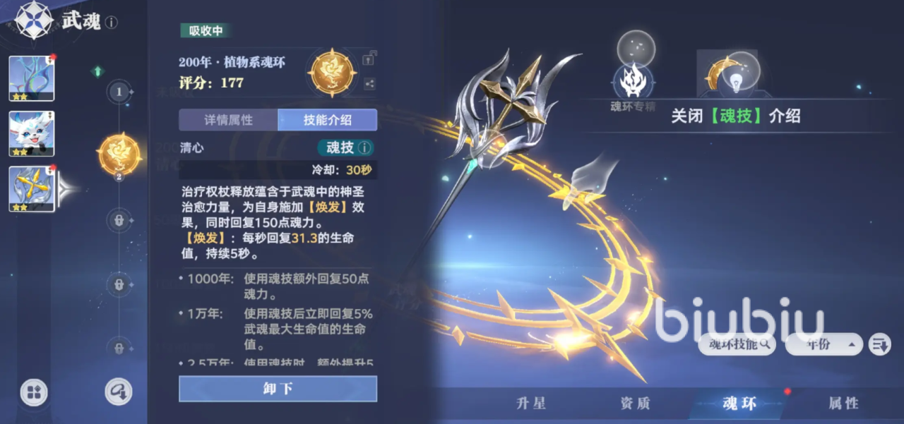 不过相同年限的魂环属性加成基本上也一样,所以大家只需要去刷跟自己实力相当的魂环就行。另外只有武魂吸收了魂环之后,才会解锁这个武魂所拥有的技能。蓝银草就会解锁蓝银突刺或者蓝银囚笼,到了越高等级对魂环的年限要求也会更高,大家可提前准备。