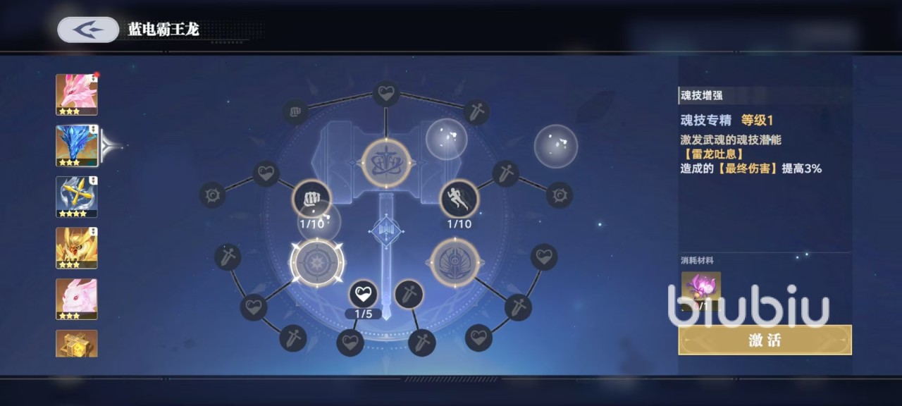 推荐优先激活四个小节点,尤其是攻击潜能和生命潜能,这两者可以直接增强输出与生存,是早期刷图、对抗精英怪的重要保障。随后,再根据自身战斗风格选择激活普攻潜能或先机潜能,前者适合依赖普攻输出的武魂,后者则能提升先手出招的节奏感,在PVP中尤为关键。随着游戏进程推进,当你的角色等级足够高且收集到充足的金色仙草时,就可以着手开发武魂的三大核心潜能系统——包括提升基础资质的远古血脉、增强技能效果的魂技潜能以及解锁终极能力的奥义潜能。