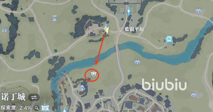 然后是第二只,这只是在诺丁城地图顶部区域的蓝银平原下方,大家可以先传送到“蓝银平原·西”这个传送点,然后向下方走,在“邪矛魂师”这个据点的右上方就可以找第二只。