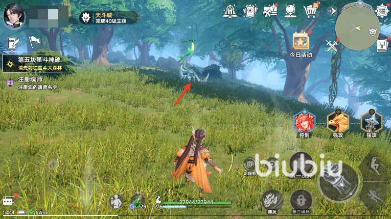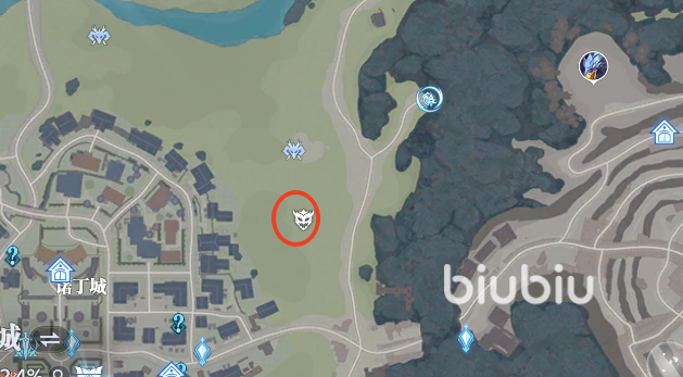 最后是第三只,这只是在中上诺丁城主城右侧,大家可以先传送到“琉璃秘境”这里,也就是刷防辅系武魂突破材料的地方,然后朝着左下走,就可以找到第三只了。