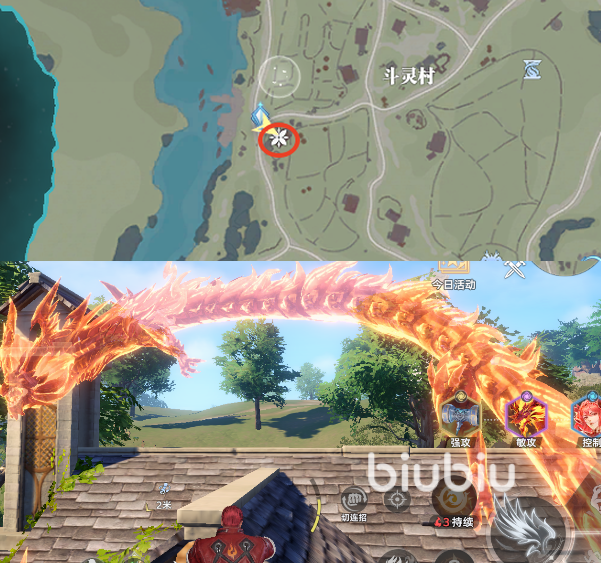 第五处回忆碎片是在斗灵村附近,先传送点,然后就可以看到在房顶的火龙,非常显眼,还是很好找的。
