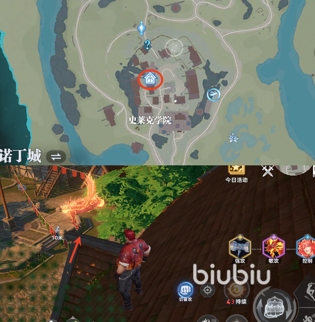 第四处是大地图左下,史莱克学院的办公室,注意是在办公室门外的房顶上,如图所示靠近就可以收集到了。