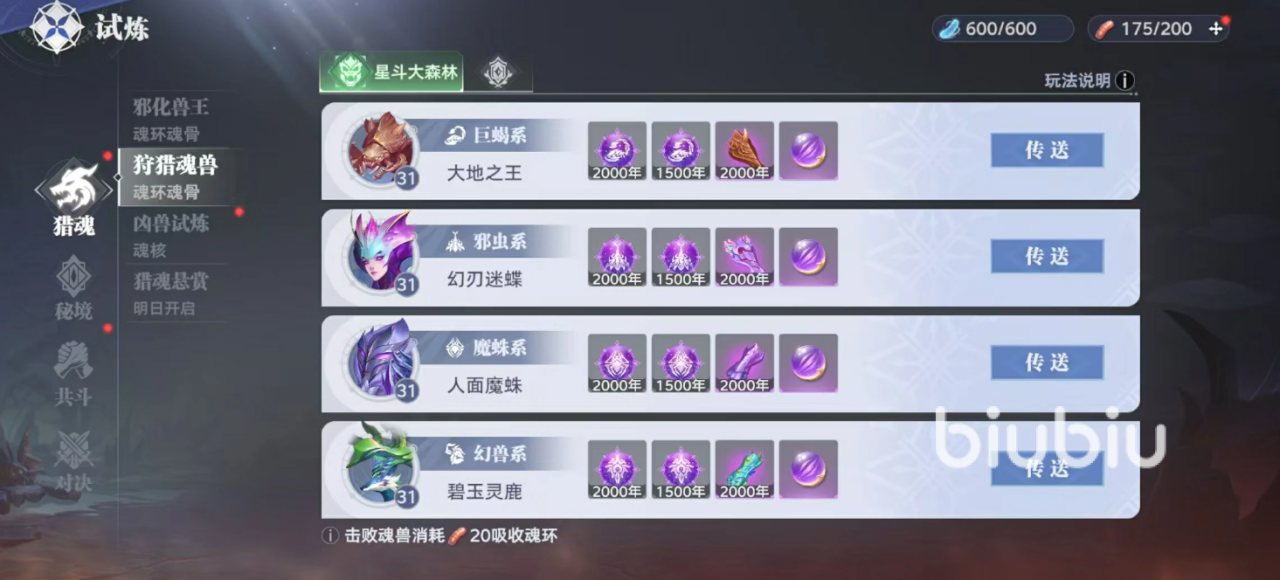 大家每日可参加拟态训练场,产出大量武魂经验,建议优先使用扫荡功能获取双倍奖励,是提升武魂阶级的主要途径。还可去刷魂兽幻境&武魂秘境:根据角色如今的养成结果去挑选该攻打的关卡,不同任务遗落不同品质的魂环和魂骨。
