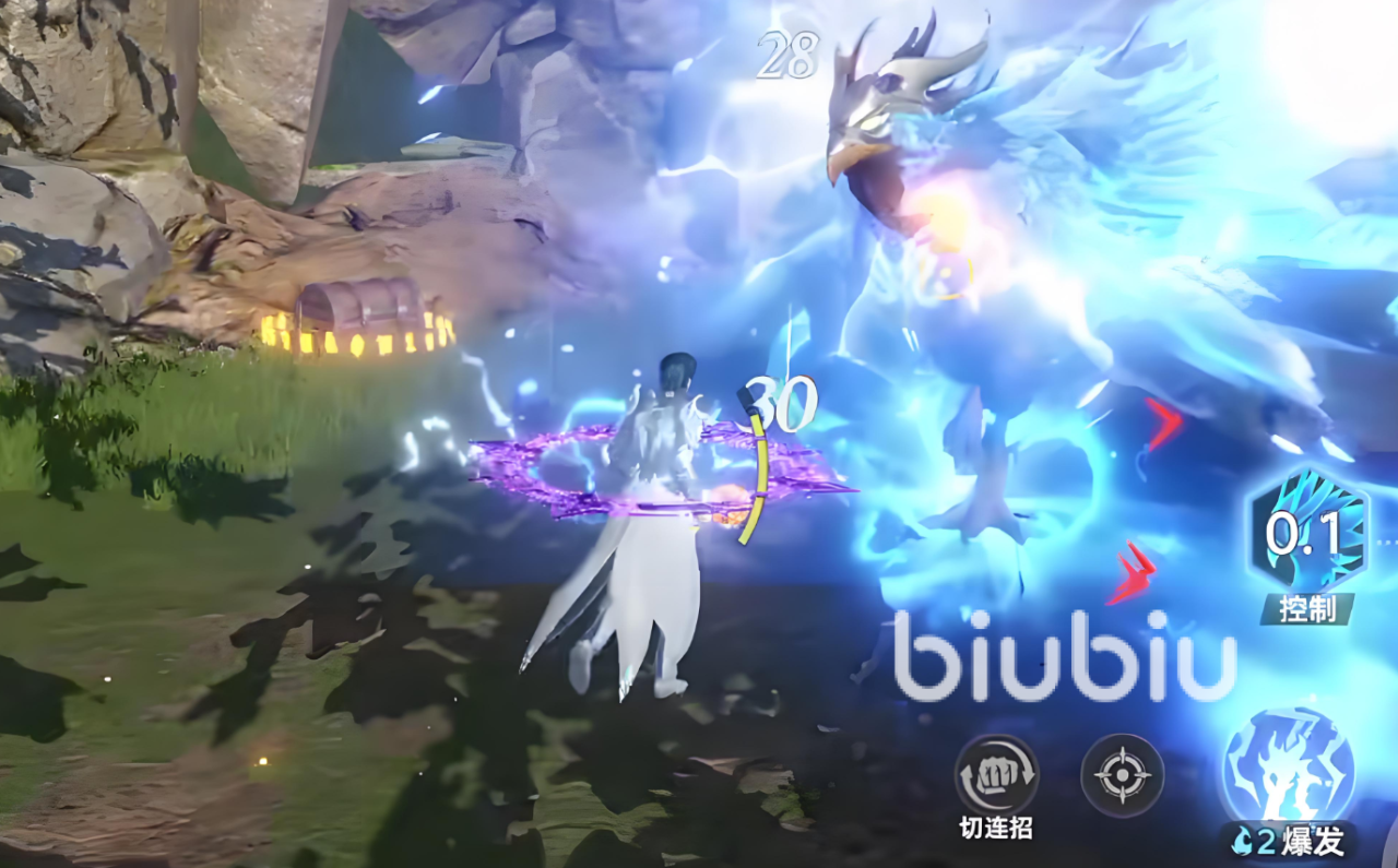 大概打到一半血的时候,紫鸟会飞向上空向地方抛出各种投掷物,这些投掷物都是有判定,那么玩家们就可以通过这些判定逃离区域,接着紫鸟会再次落入地面,这时候就能释放雷电奥义,召唤雷电龙对周围的敌人造成范围打击,每次打击的伤害倍率都是很高的,是很容易打到三分之一的血量,最后三分之一血的时候,这时候奥义技能cd基本上已经转好了,最后在释放一类雷电龙奥义就能完成狩猎。