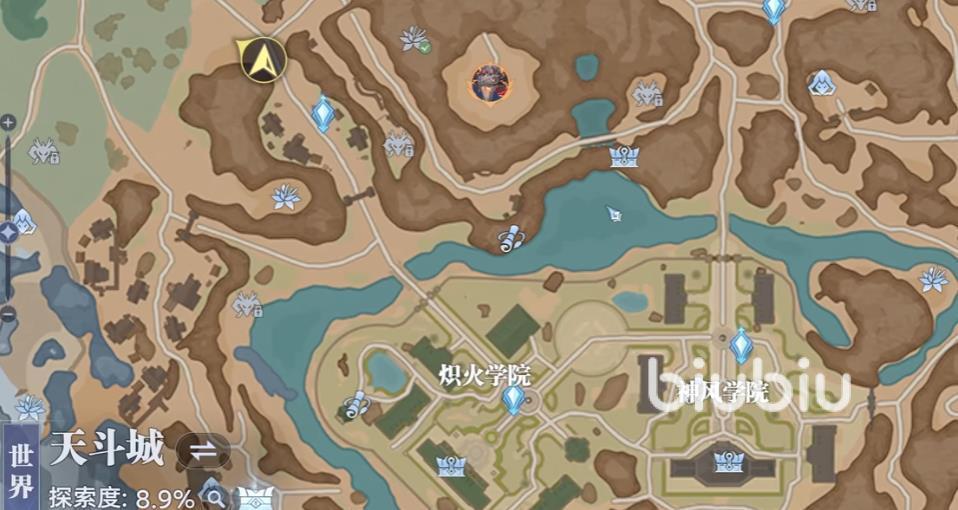 谈起这角色的回忆所在位置,该角色的回忆有很多,这在开头已经说过了,其中第一个回忆在炽火学院的正上方的山上,来到这里后可以看到一只蓝色的魂兽,这魂兽就是他回忆的化身。之后找到了该回忆后,接下来需要前往神风学院。