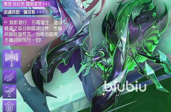 2025年12月18日 14:06 来源:秋葵为六尾斗罗大陆猎魂世界噬魂蛛皇是在1.4版本推出的全新武魂,于12月18日正式实装,其拟态形象是大家熟悉的“噬心圣女”比比东。那么这个武魂怎么样呢?作为非常典型的毒系流派武魂,其技能设计也是围绕着持续叠毒、长线收益展开的,整体来说是有较高上限的持续输出型武魂。