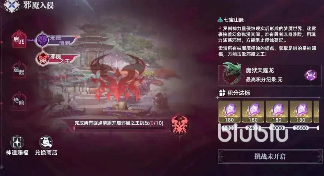 邪魇之王:在邪魇清剿每个轮次都会产生一个邪魇之王,完成上述条件之后就能对这个boss进行挑战,也不用使用其他体力和道具,时间内也是能自由挑战的,如果被boss打败,可以免费复活2次;