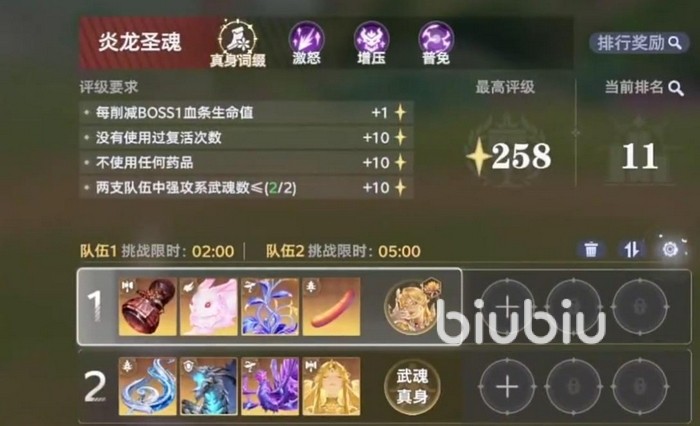 挑战则是每2天开放一个新的boss,并且有挑战评级排行榜。8天一共开放4个boss和4个评级排行。每个boss要2个队伍分别挑战,根据总成绩来参与评级。同样是不消耗体力也不消耗道具,可以免费复活一次。