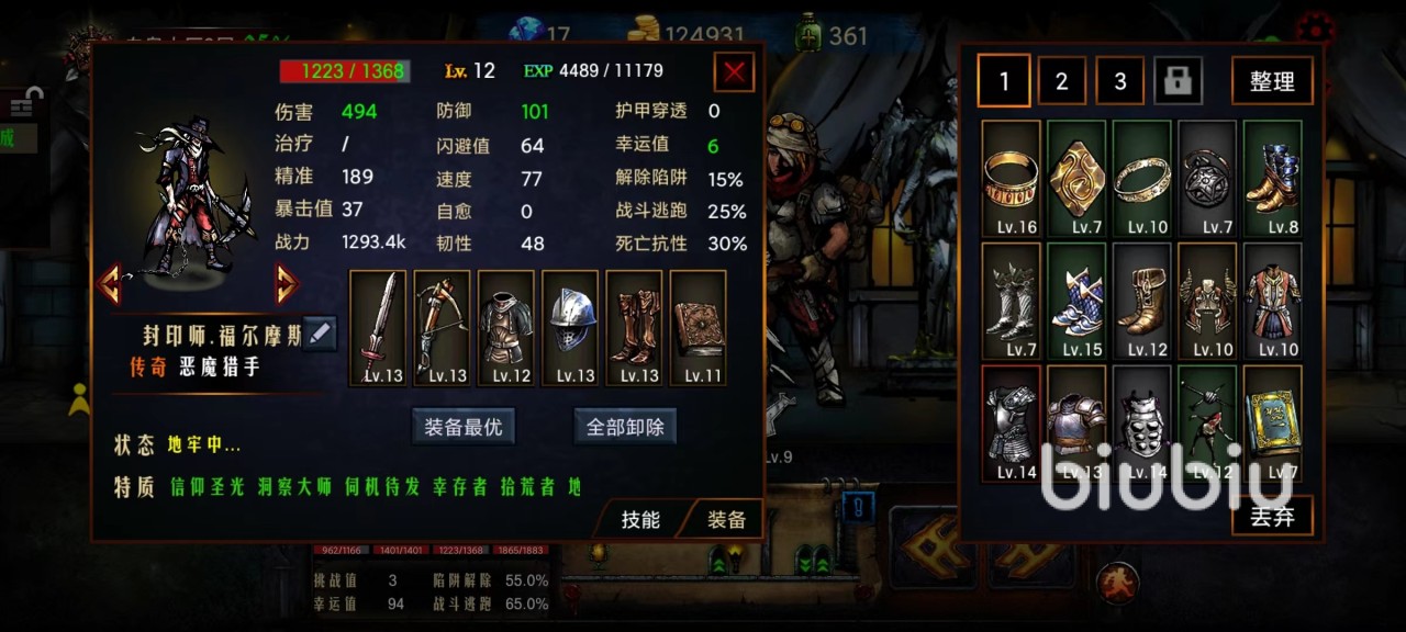 在地牢中探险分为三个阶段,分别是普通、噩梦和炼狱难度。在普通难度下怪物防御比较低,也没有特殊体质,随便带一些英雄就可以顺利通关,即使是白板英雄,同样可以使用。到了噩梦难度,就需要考虑穿戴一些特殊装备,尤其是带有绿色穿透属性的装备更加合适,因为这时的怪物防御力已经非常不错,boss有了相关体质,这就需要收集一些强势英雄去战斗。到了炼狱难度稍有不慎都会灭团,对冒险者威胁很大,所以一定要先提升等级和自身实力,尤其是要给主力英雄穿上神器以后再开图去探索。
