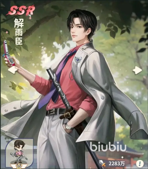 解雨臣出生长沙老九门的解家,八岁便担任家族的重担,他精通易容术和缩骨功,长相秀丽,是翩翩公子一枚。他是SSR品质的淘金职业,在淘沙队伍中担任前排肉盾,能通过对敌人施加灼烧效果,为自身获得高额减伤。普通攻击“龙纹棍法”,攻击目标时,有概率施加灼烧效果。怒气技“劈山劈水”,对多个敌方单位造成伤害,并对其附加灼烧,进一步叠加灼烧层数以触发连锁效果。