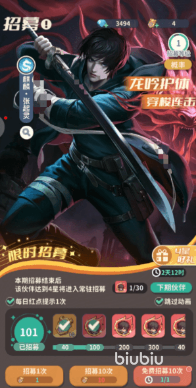 他是寻龙阵容必须具备的输出型角色,能克制所有的阵营,并且在造成高额伤害的同时附带血盾和霸体,放在前排也能安稳输出,他的普攻会近距离对目标造成输出,自身有几率得到“龙吟”,战斗每间隔一段时间,还能给自身附加血盾,他的怒气技“煞气狂斩”会在敌人之间穿梭打出伤害,自身有几率获取“龙吟”,在攻击敌方单目标时会触发连击,并且释放过程中会处于霸体状态;