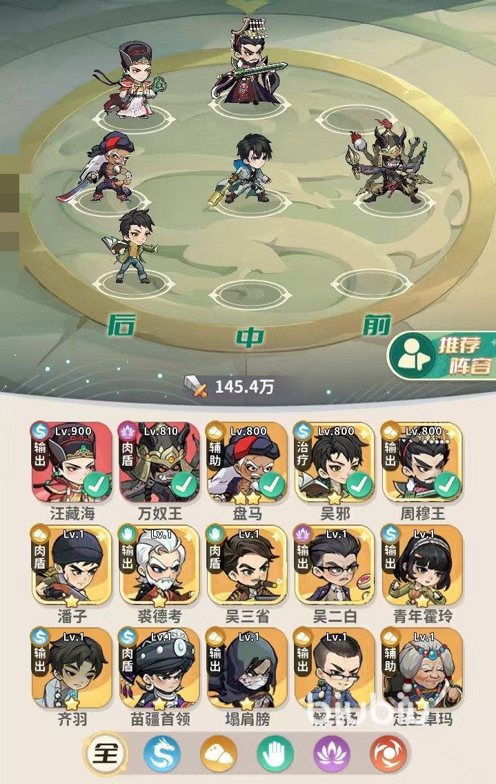 目前主角主要选择淘沙职业和寻龙职业这两类,所以小编就从这两个职业的阵容搭配方面进行介绍。首先是寻龙职业,寻龙职业自带攻击提升buff,流派的核心机制就是叠加buff增加技能伤害,面对单个目标时有额外增伤,在打boss的时候非常强势。在阵容方面,小编主要推荐主角、万奴王、麒麟张起灵、张起灵、吴邪和汪藏海的搭配方式。