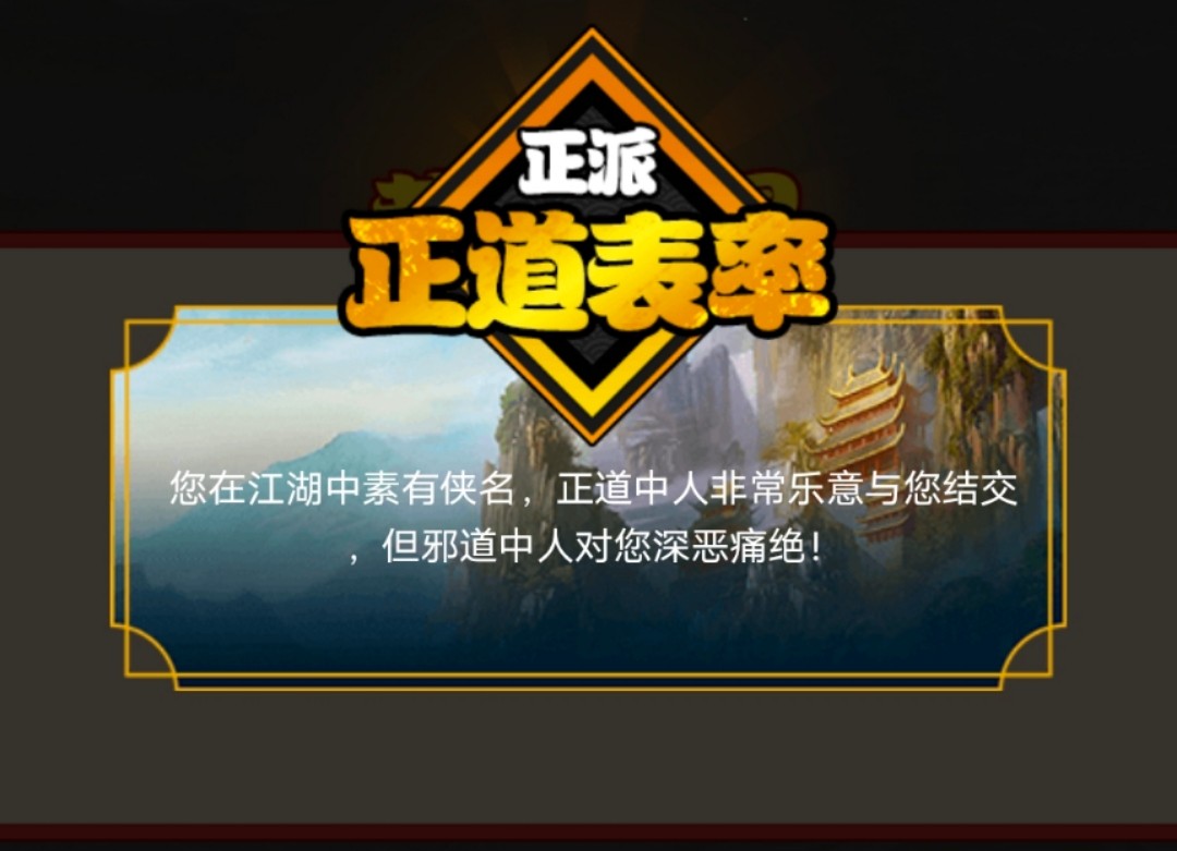 ⒈ 在参加江湖事件时,玩家可以做出不同选择开启不同剧情获得不同奖励。当你作出类似在日常生活中不符合社会主义核心价值观的选择后就会扣除道德值,使道德值降低。比如,门下弟子发生争执时,你是选择询问缘由,还是直接惩罚。当你选择直接惩罚后,便会扣除一定道德值。当然,玩家若是做出其他选择,便可能会增加一定道德值。