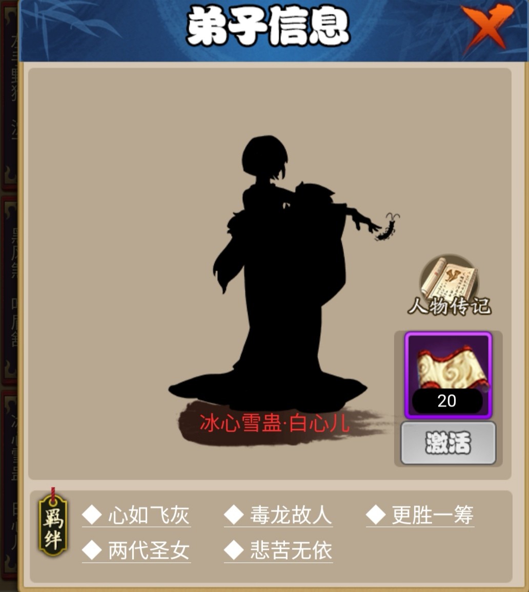 白心儿作为毒龙教的上一任圣女,所以她的技能也大多以蛊毒为主。我们先来说一下白心儿的定位。她的核心羁绊是内力和攻击加成,所以当你的阵容中有蓝凰儿这个人物的话,是蓝凰儿和白心儿搭配就可以作为后排的双核心。