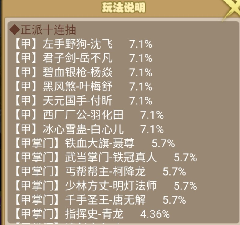 白心儿的抽取概率大约是7.1%,还算是正派里面比较难抽取的人物。
