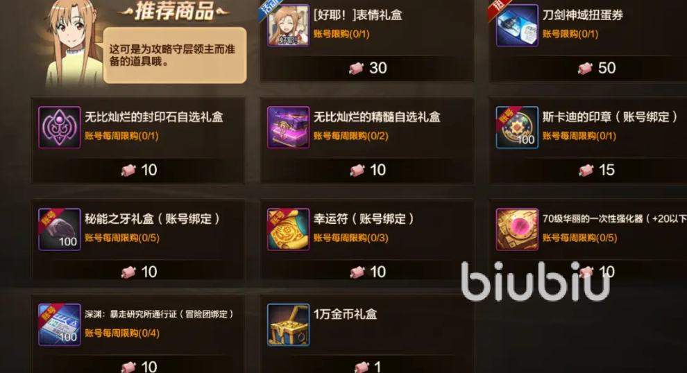 这个肉可以让咱们在活动商店进行物品的兑换,这些兑换包括大量的深渊票,华丽的一次性强化器。幸运符和刀剑神域扭蛋等等。大家可以先看好自己想要的物品,然后根据身上的肉来进行兑换。