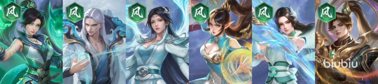 阵容组成:云韵+药老+任意火系角色*2、风系角色*2。