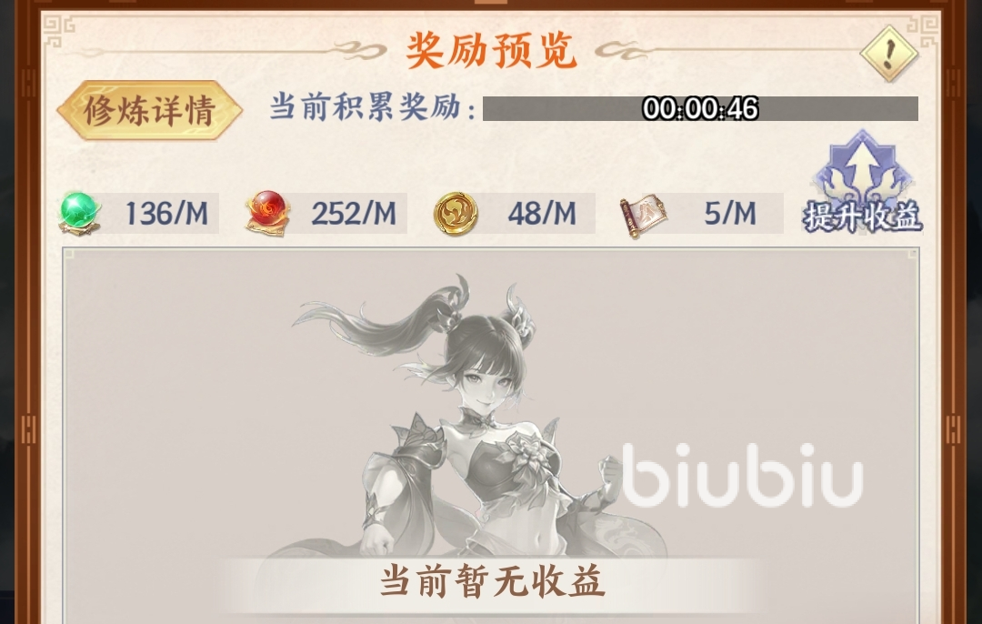 随新手指引任务解锁,挂机便可拿到【斗者经验】、【主角经验】、【破境丹】等基础养成资源,最高能累积12小时的收益。通过冒险主线能增加修炼基础收益,当玩家通关指定关卡后,还能解锁石台,每尊石台能令收益增加100%,若解锁了心火淬炼特权,可直接获得两尊石台。此外,利用快速修炼能立刻领取2小时的挂机收益。
