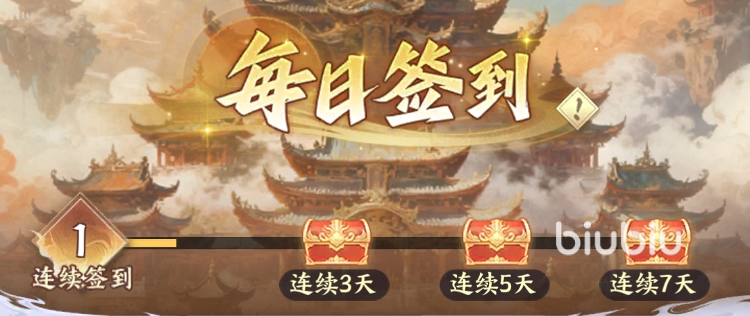 可从主城界面中的福利功能进入,每天登录签到便能领取奖励,能拿到【紫晶卡】、【征召玉兆】、紫色和金色的【斗者碎片】,连续签到一定天数后,还能领取连签宝箱。