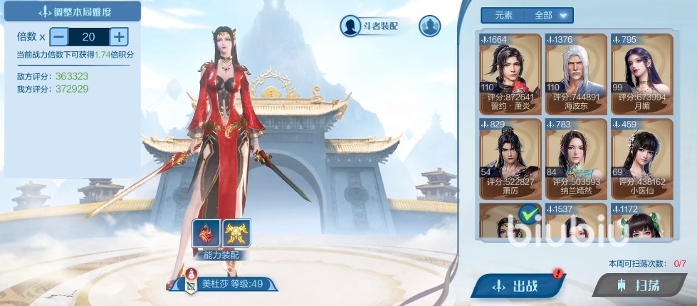 接下来就是萧熏儿, 她和美杜莎一样,都是伤害非常恐怖的角色,但是不同的地方就在于她能够带来单体高爆发的伤害效果,能让大家在打boss的时候会更加的轻松。